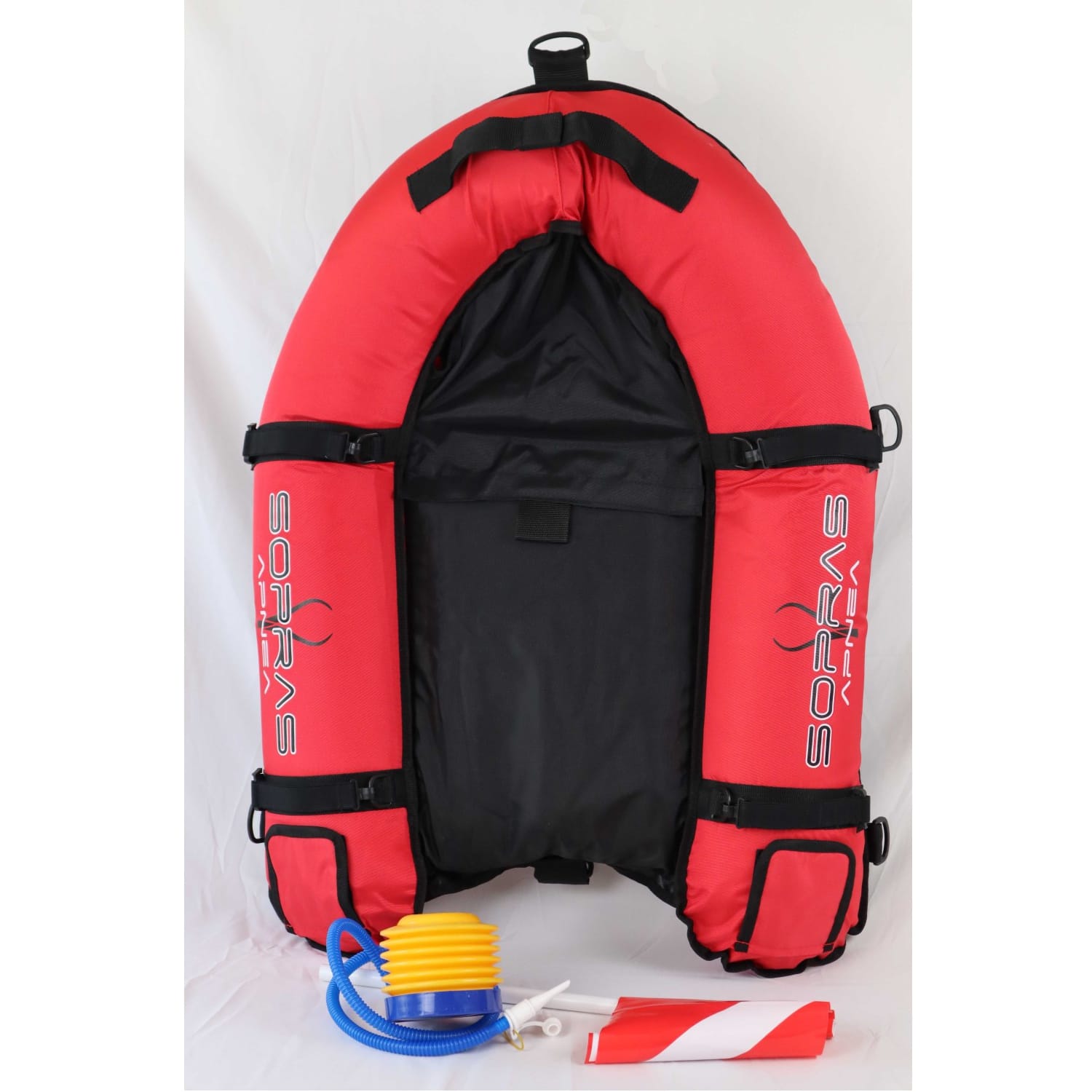 Nafukovací hladinová bóje/člun se třemi nezávislými dušemi pro maximální bezpečnost. Výrazné barvy dobře viditelné na hladině a kýl je navržen tak, aby minimalizoval odpor ve vodě. Vnější potah je vyroben z odolného nylonu 400D. Disponuje systémem elastických pásků a D-kroužků usnadňujících transport harpun, šípů atd… Na přídi je prostor uzavíraný na suchý zip pro umístění svítilny, nádoby na vodu, dry boxu a podobného malého příslušenství. (D 90cm x Š 60cm x V 15cm, váha 1,35kg.
