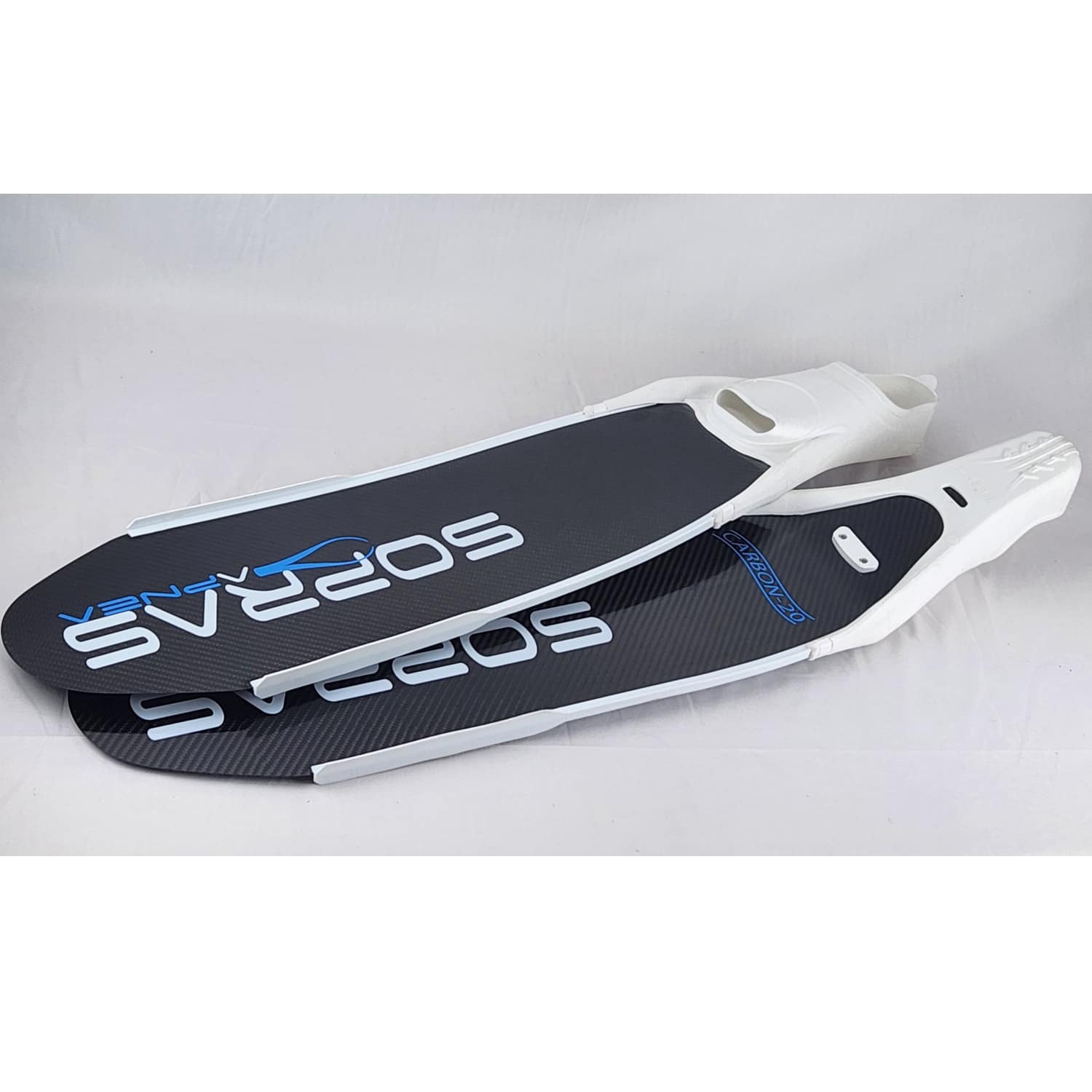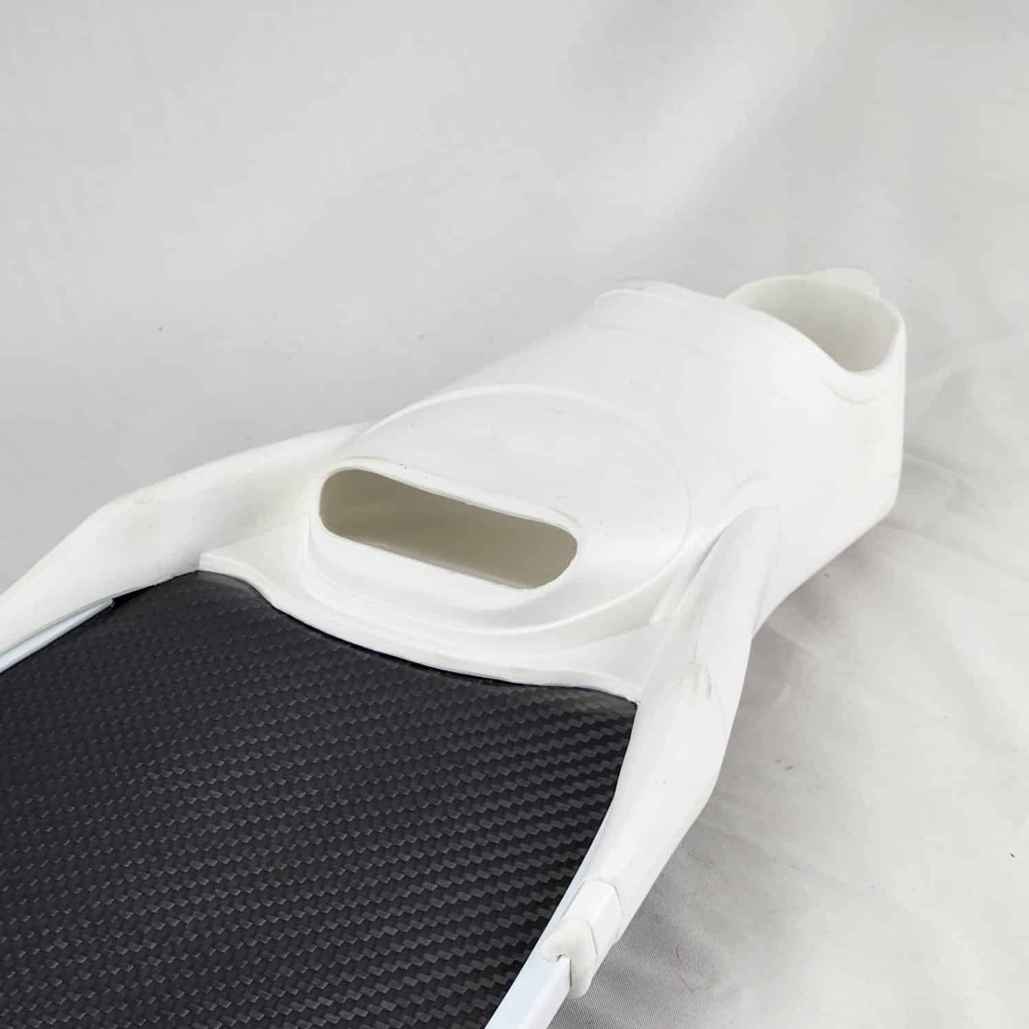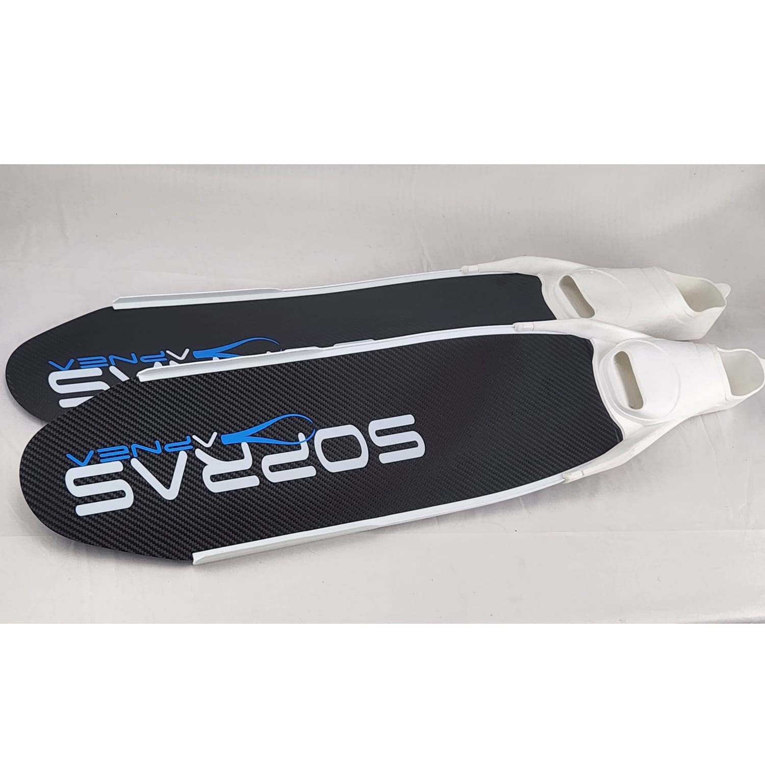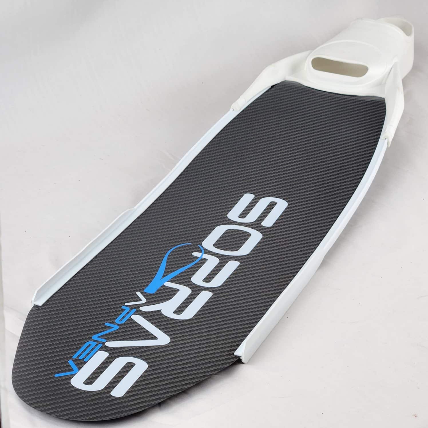 HF 400 have a smaller shoe pocket with very light weight and rails glued along the blades, that has a 24degree angle with the shoe pocket and is harder at the beginning become softer towards the end of the blade, make it ideal for deep diving as well as dynamics in the pool.